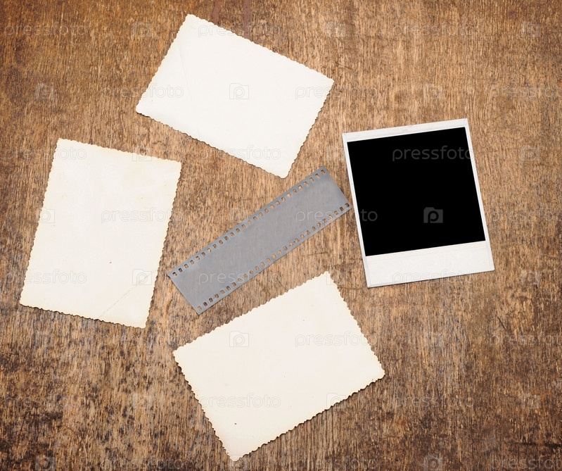 Старинные фотографии и диафильмы на деревянном фоне