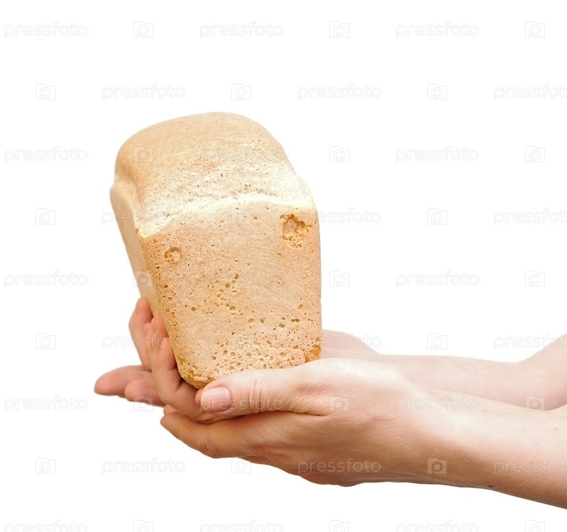 Детские руки с буханкой хлеба на белом фоне