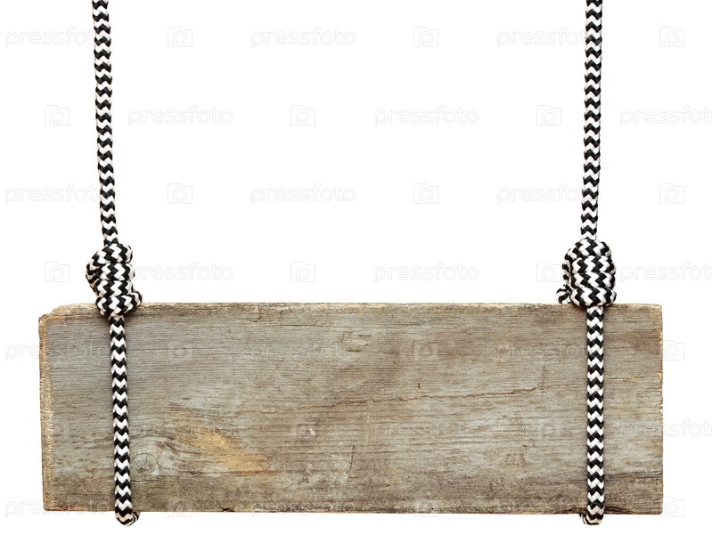 Деревянная табличка на веревках, изолированная на белом фоне