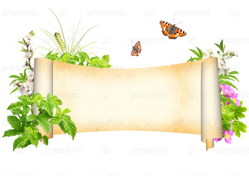 Старый свиток, растения и бабочки