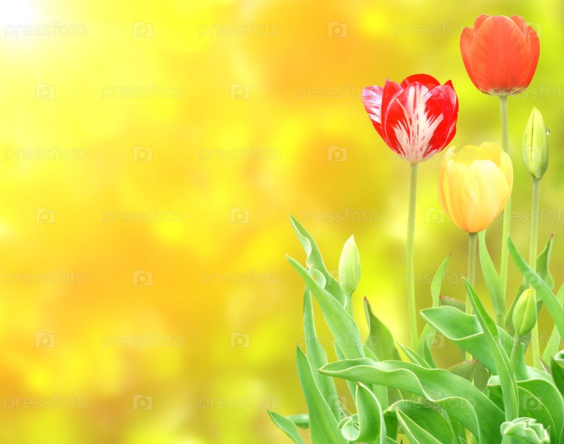Желтый фон с тюльпанами