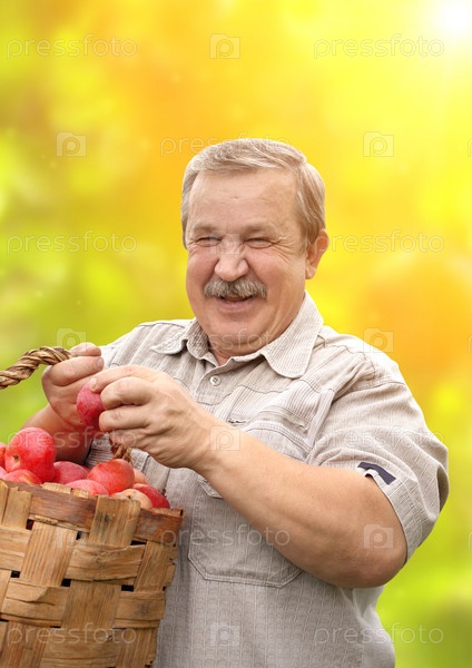 Мужчина с корзиной яблок