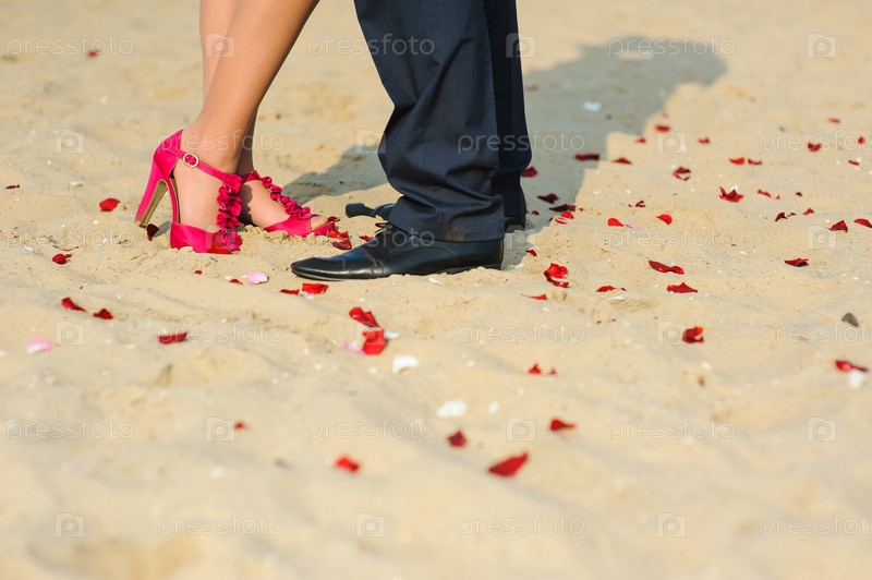 Мужчина и женщина, стоя на песке