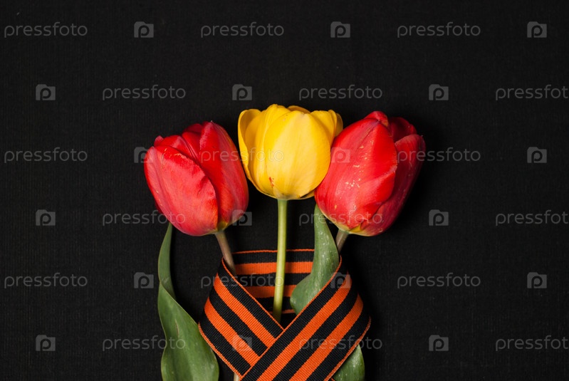 Тюльпаны и георгиевская лента