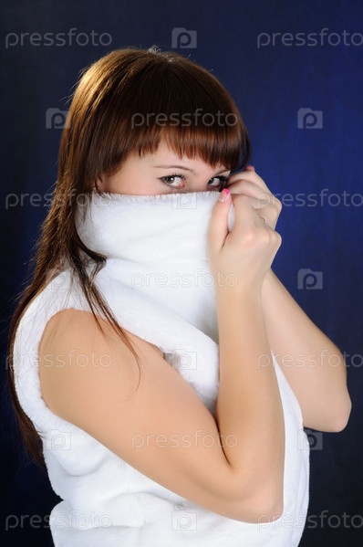 Девушка скрывает лицо за воротником из искусственного меха