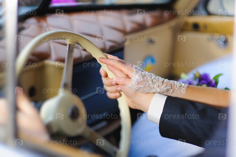 Рука женщины и мужчины на рулевом колесе