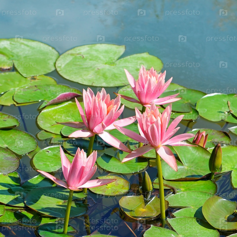 Розовые цветы лилии в пруду
