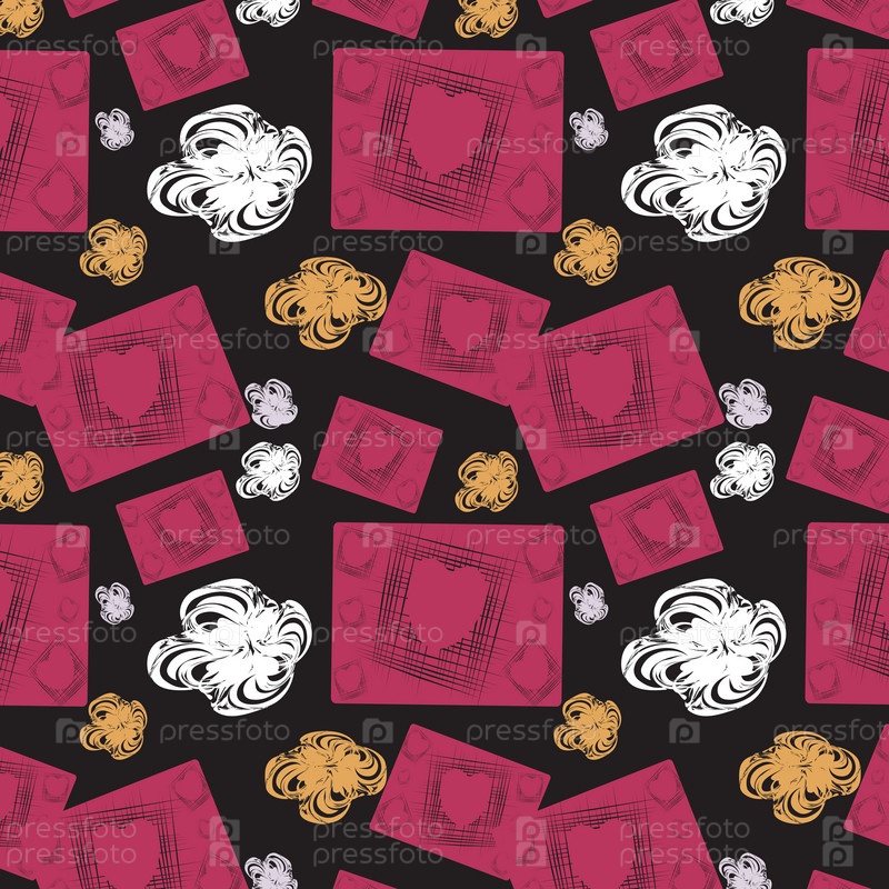 Бесшовный фон с яркими абстрактными сердцами и квадратами