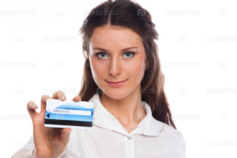 Портрет молодой красивой девушки с кредитной картой в руке