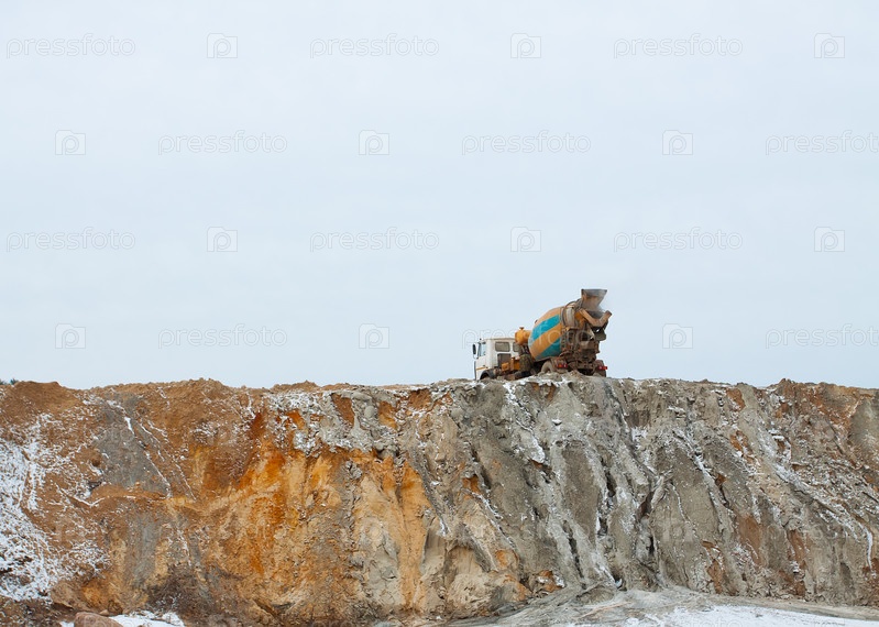 Автомобиль с бетономешалкой на строительстве Гродненской ГЭС в Белоруссии