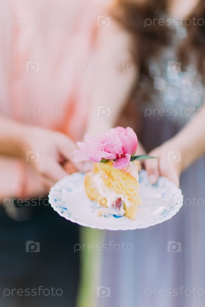 Крупным планом фото тортика в руках влюбленных