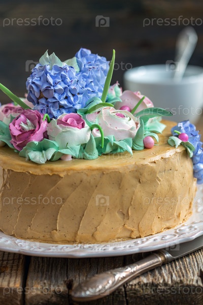 Торт с кремовыми цветами