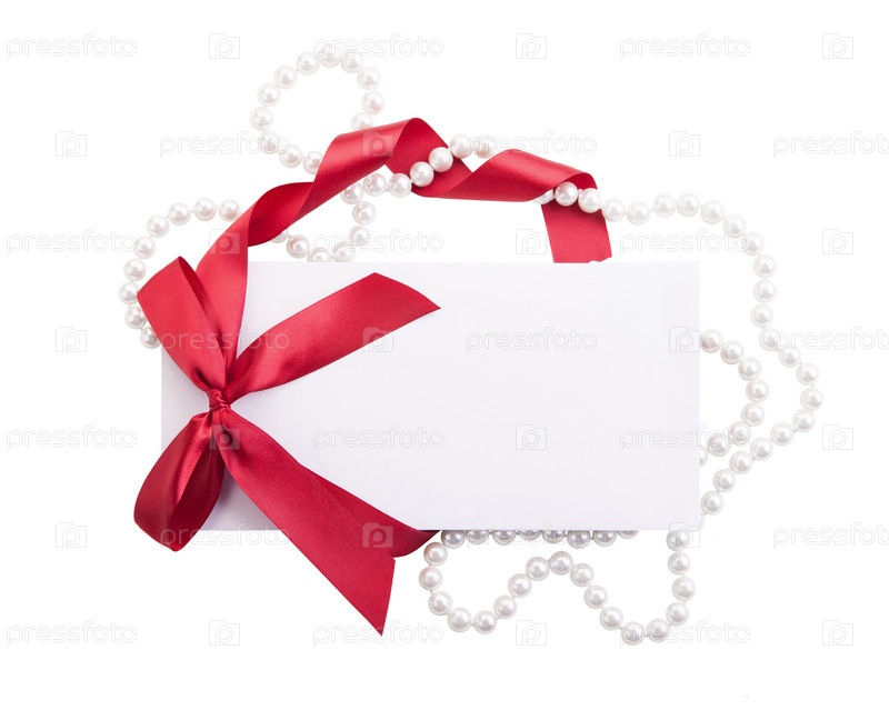 Карта с красной лентой и жемчугом
