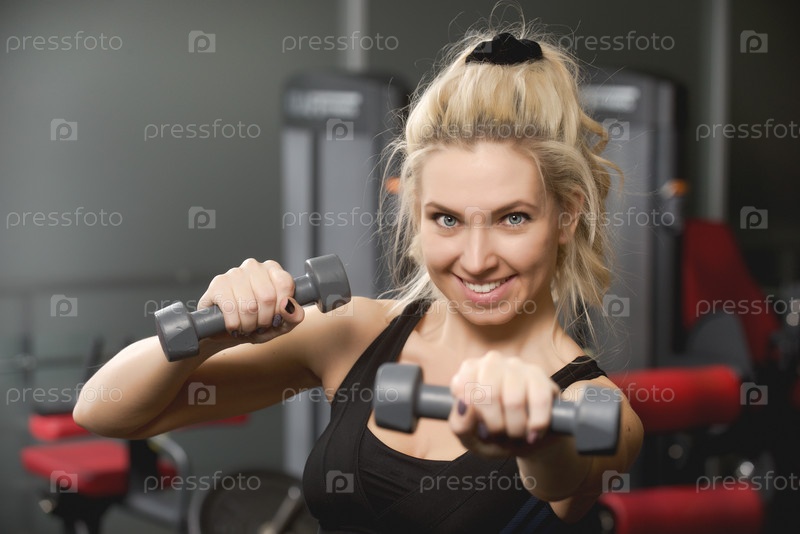 Девушка с гантелями