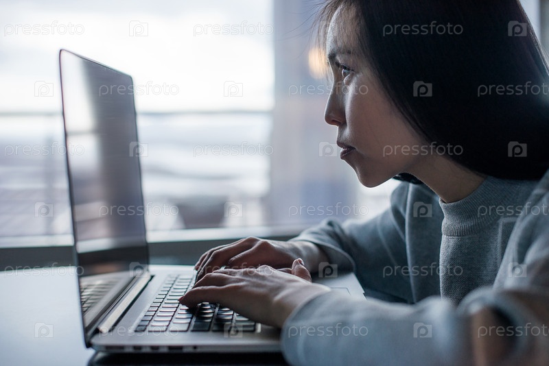 Девушка за ноутбуком