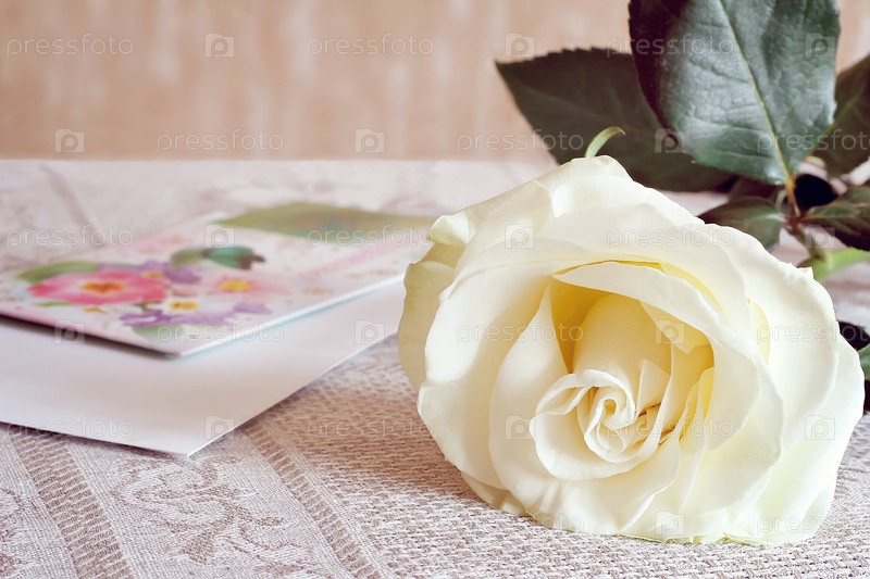 Белая роза и поздравительное письмо