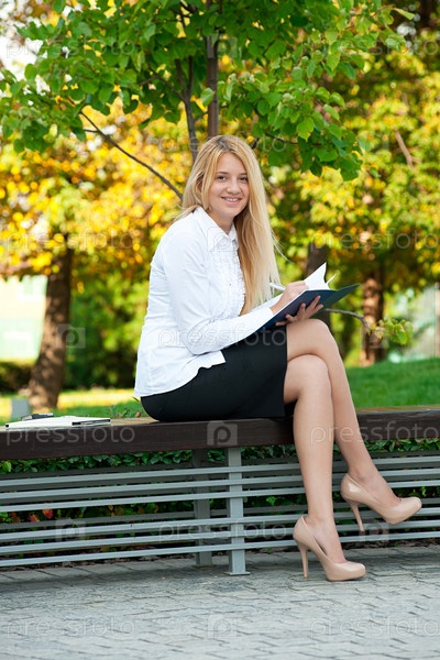 Деловая женщина с документами на свежем воздухе