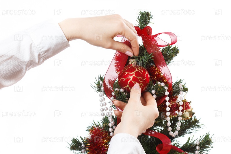 Украшать елку с шарами, лентами