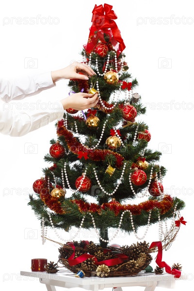 Украшать елку с шарами, лентами