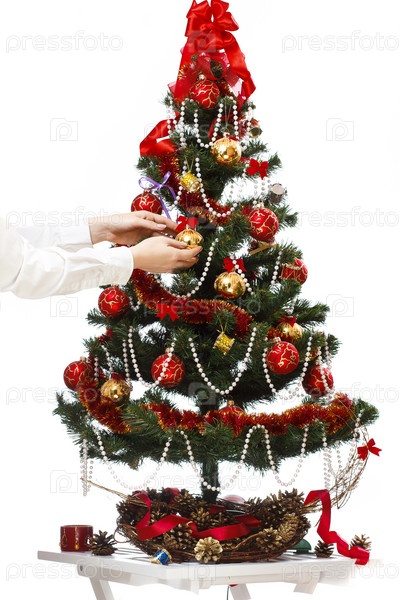 Украшать елку с шарами, лентами