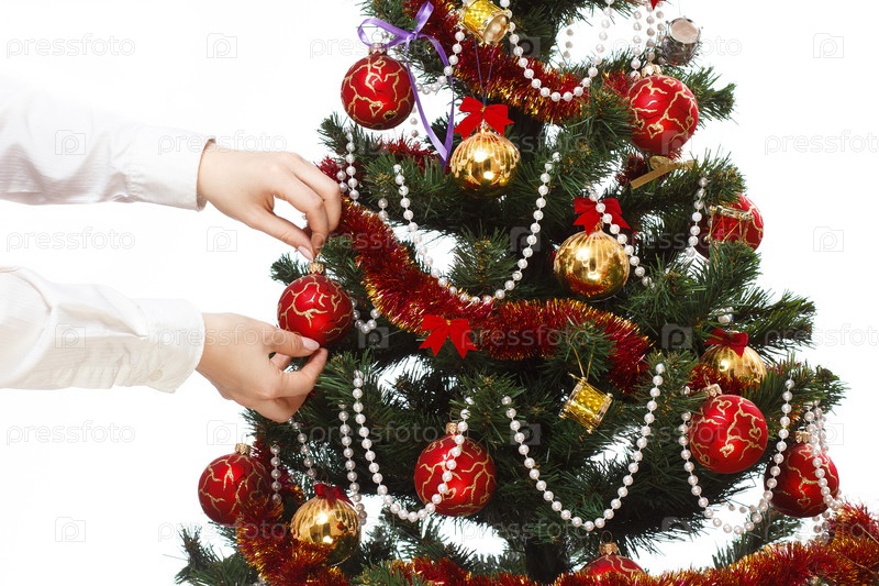 Украшать елку с шарами, лентами