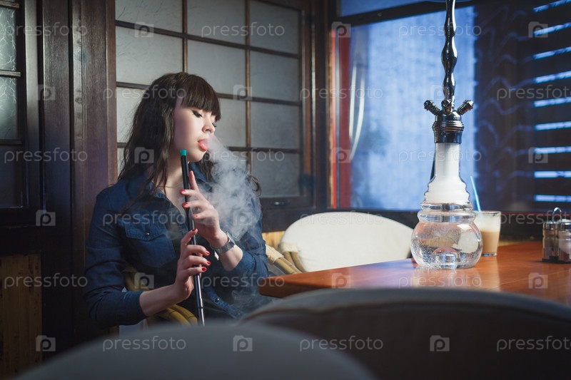 Красивая молодая женщина с кальяном