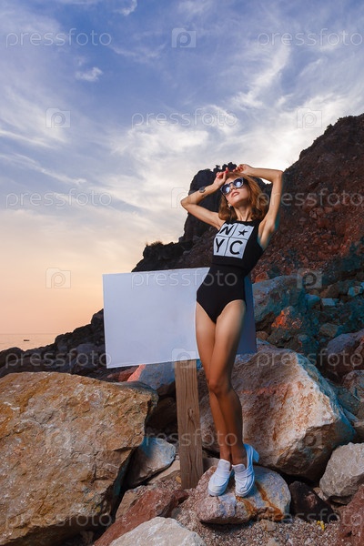 Девушка на пляже на закате