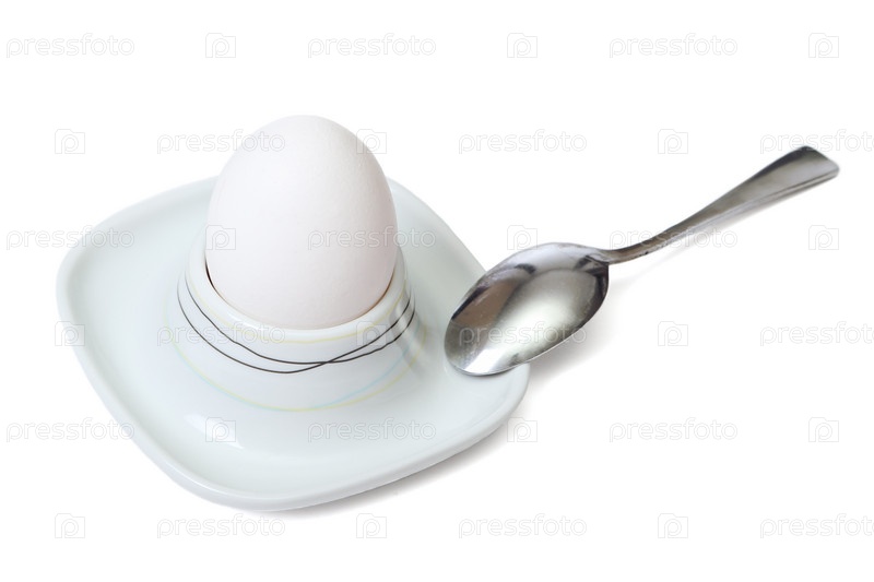 Яйцо в белой подставке на белом фоне