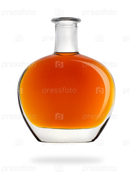 Бутылка коньяка на белом фоне