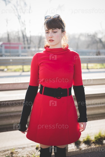Девушка в красном на прогулке