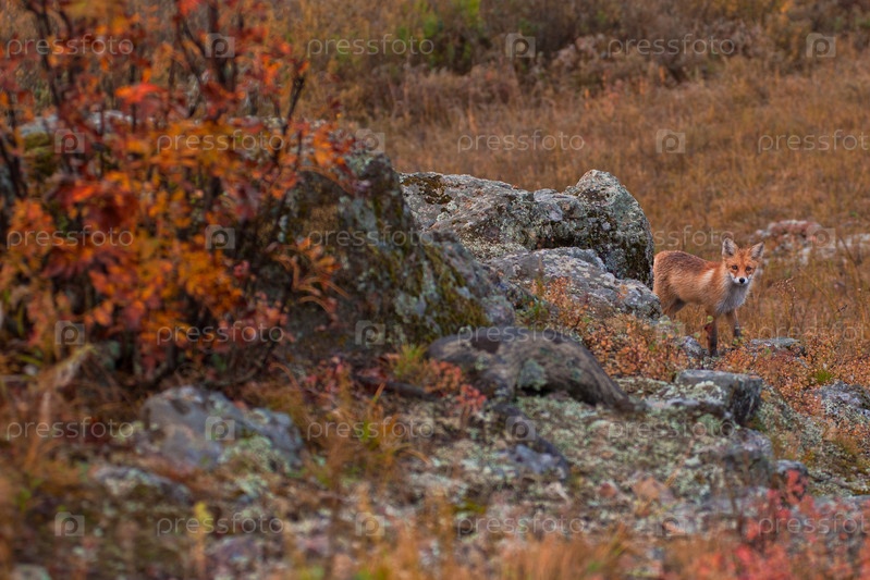 Рыжая лиса в тайге