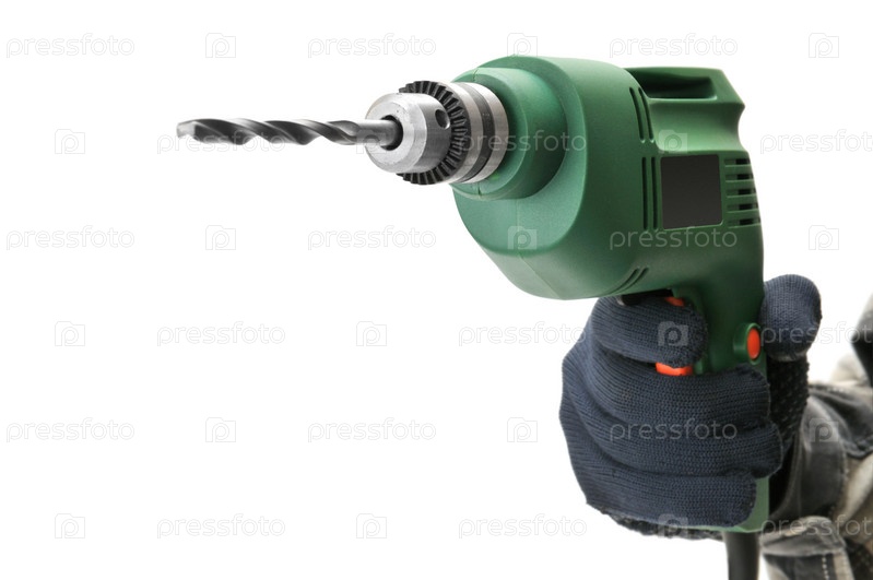 Электрическая дрель, изолированная на белом фоне