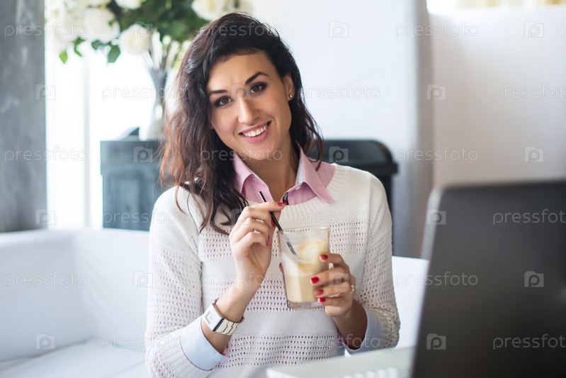 Красивая девушка со стаканчиком кофе