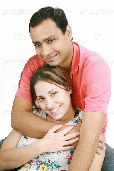 Молодая пара на белом фоне