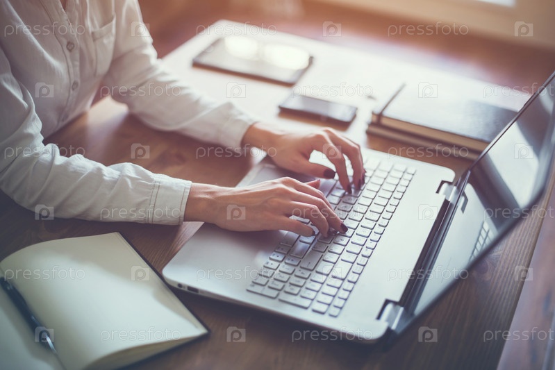 Девушка работает за ноутбуком