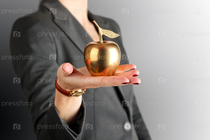 Золотое яблоко в руке деловой женщины