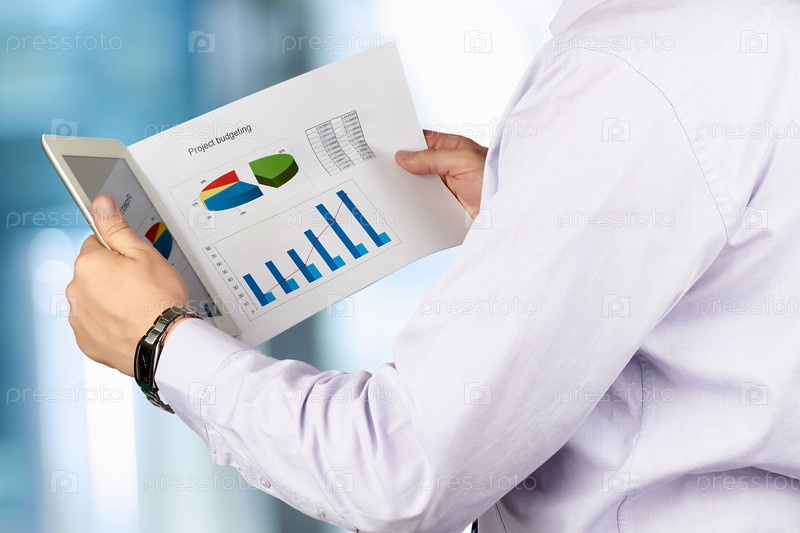 Бизнесмен изучает графики