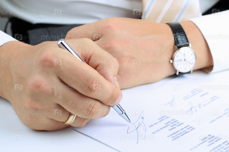 Бизнесмен подписывает контракт