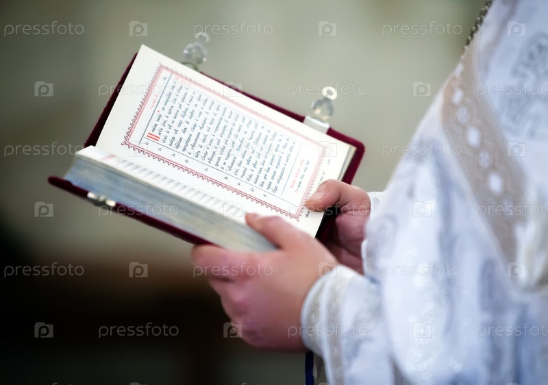 Святой отец с Библией читает молитвы