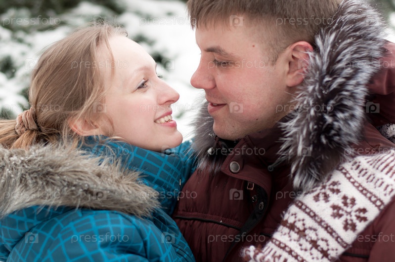 Влюбленная пара в зимнем лесу