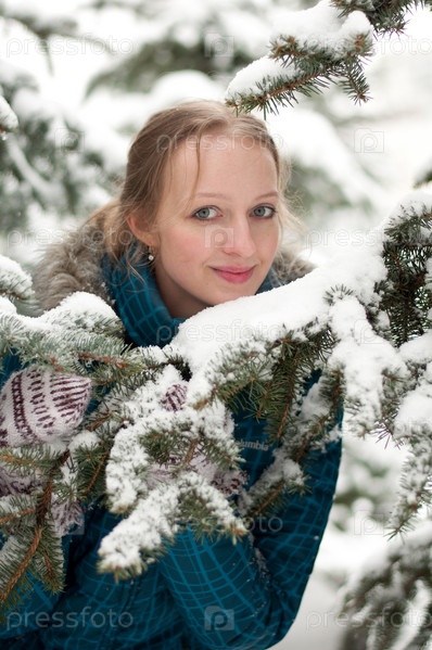 Молодая женщина в еловом лесу