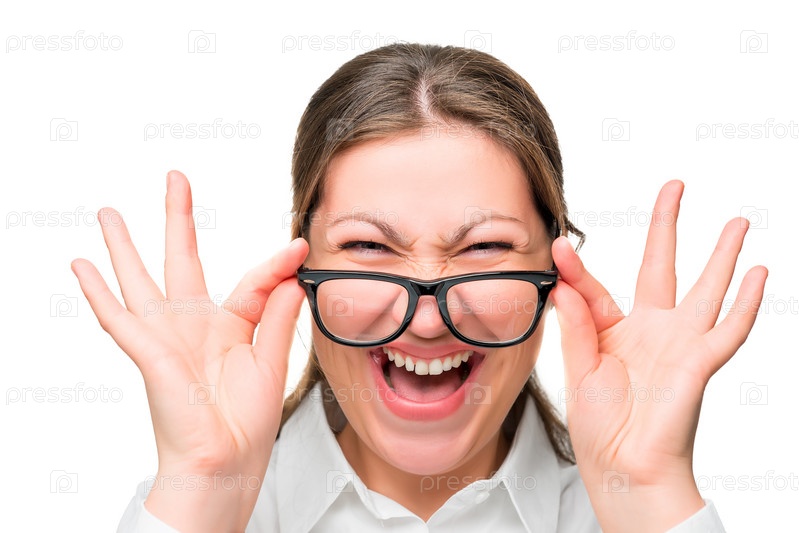 Счастливая женщина в очках