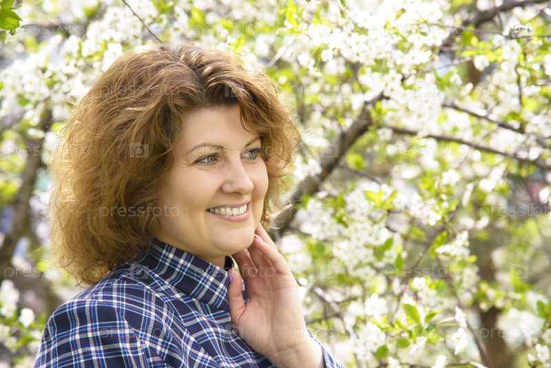 Женщина в цветущем парке