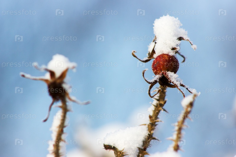 Ветки шиповника в снегу