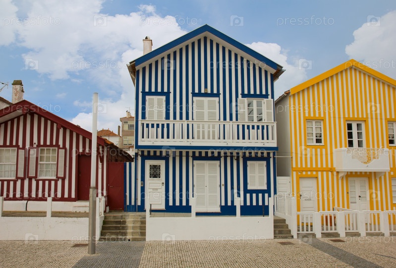 Типичные полосатый разноцветные дома в Коста Нова, Португалия