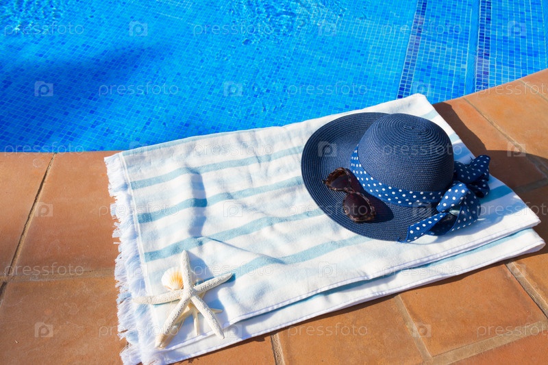 Шляпка и полотенце у бассейна