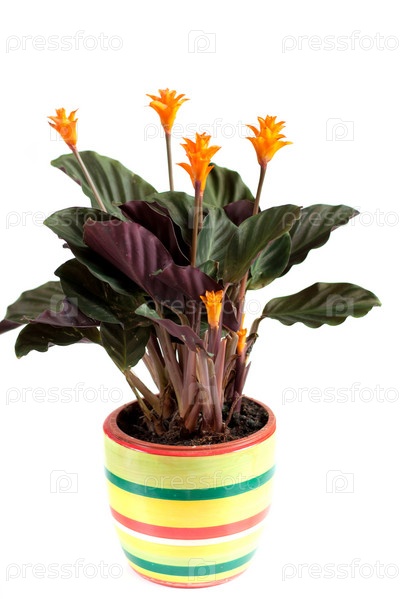 Цветок калатея шафранная, kalateya krokata, изолированный на белом фоне