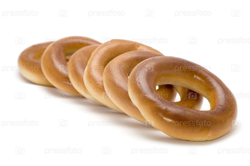 Ряд бубликов на белом фоне