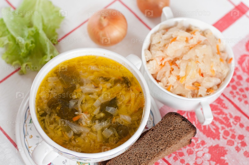 Квашеная капуста и суп с капустой. Русские национальные блюда