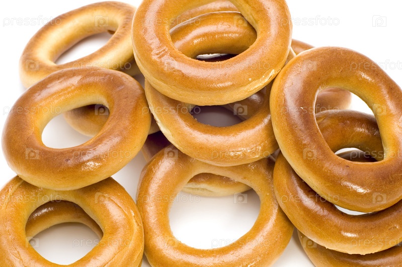 Куча бубликов на белом фоне